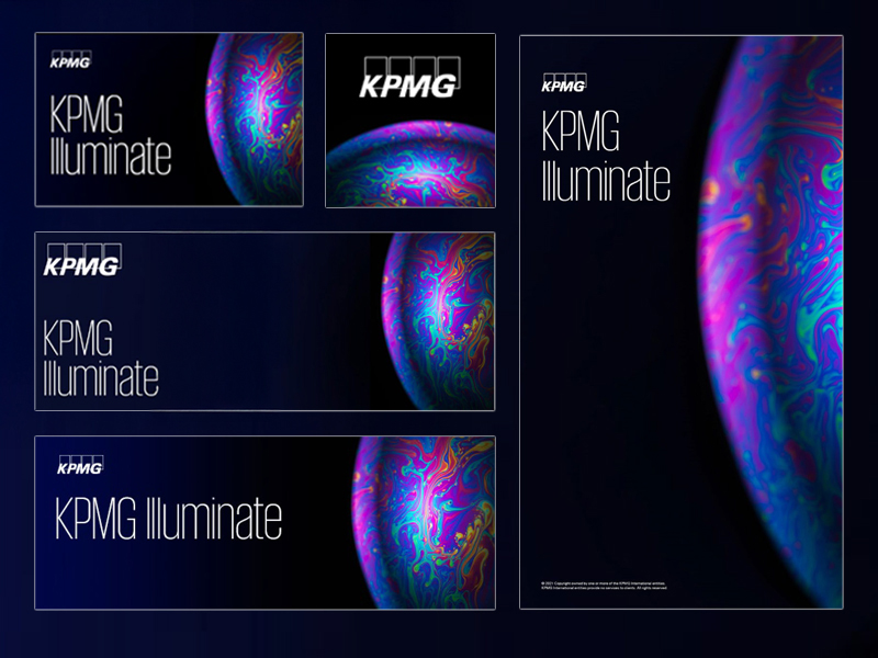 I led the design direction for the KPMG Illuminate signature identity system, creating a bold and recognizable visual language anchored by a hyper-saturated soap bubble—symbolizing innovation, fluid collaboration, and creative energy. The vibrant gradients represent the convergence of ideas across the firm’s innovation ecosystem.